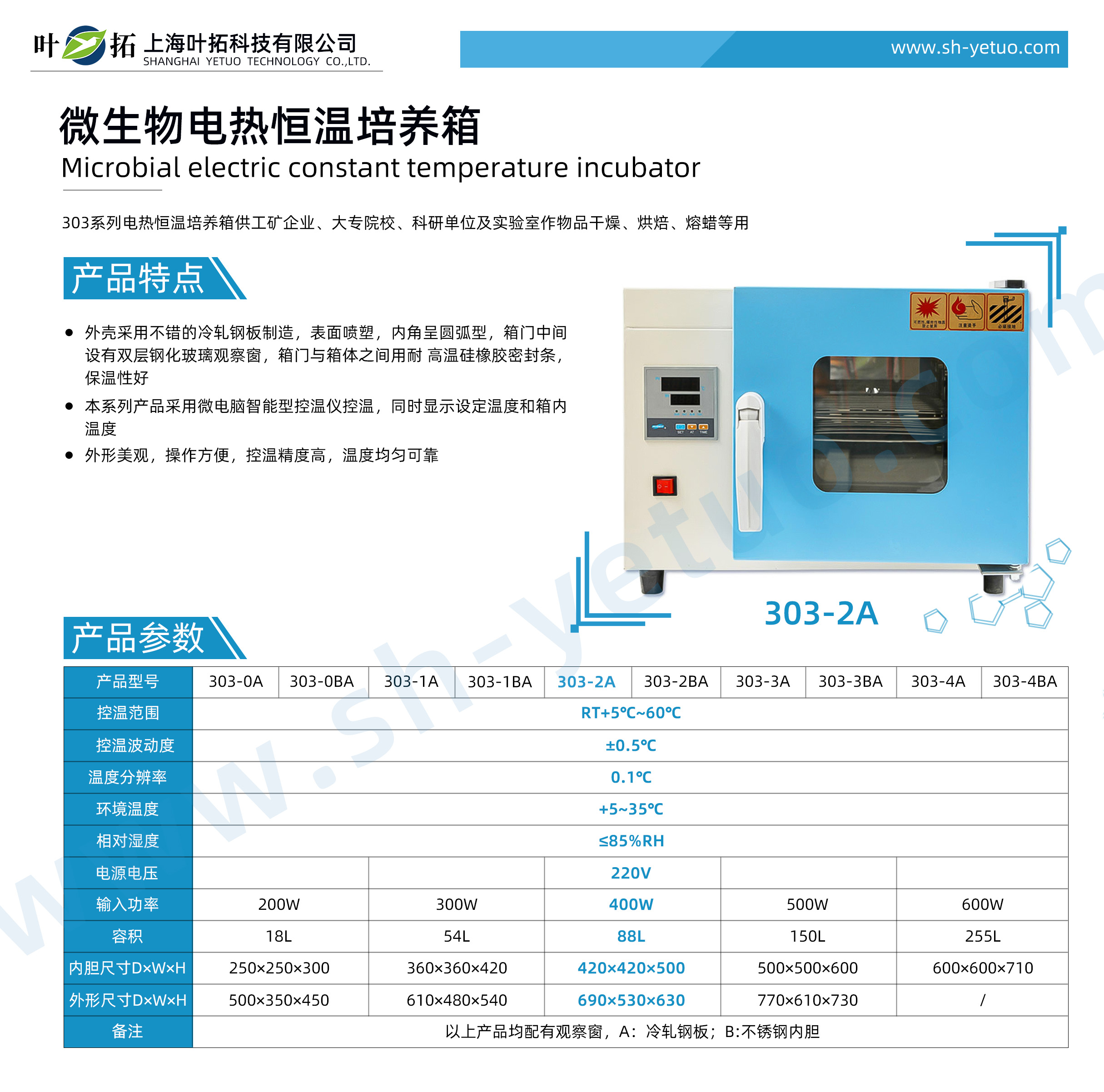 Product Features of Yetuo303-2A Microbial Incubator